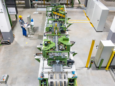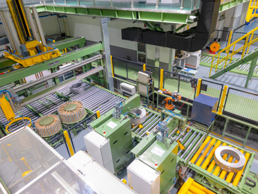 PT1000全序列自動理料鐵心柱生產(chǎn)線,自動疊片,保證同時生產(chǎn)的各柱及厚度完全一致,有效降低了因各柱厚度不一致而導致的損耗。