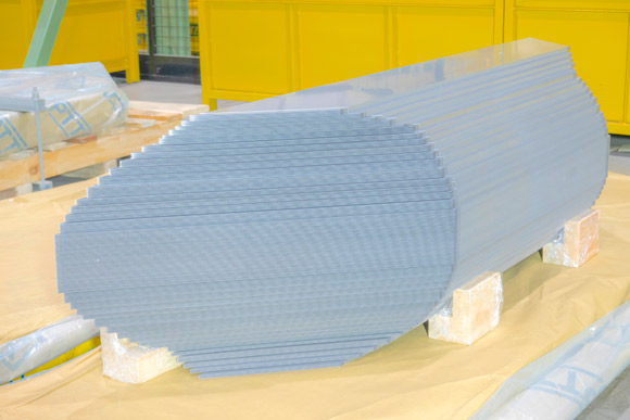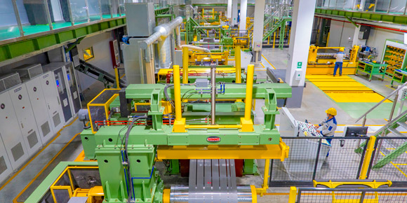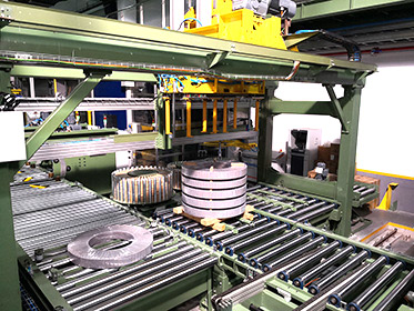 PT850全序列自動理料鐵心生產(chǎn)線,自動堆垛、自動疊片,保證同一級片數(shù)及厚度完全一致,有效降低了硅鋼剪切加工過程中的損耗。