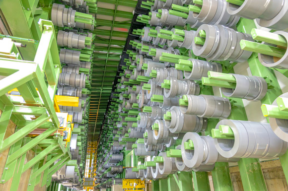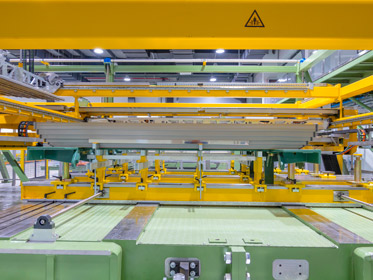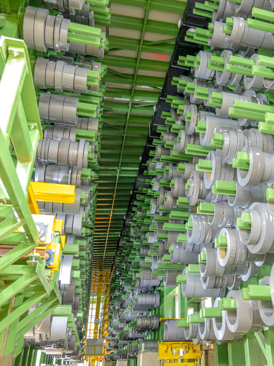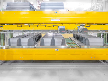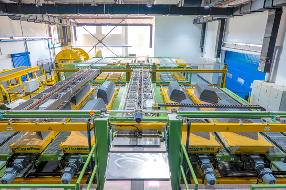 智能分選并自動定時、定量配送到縱剪、橫剪及包裝設備上,從而使生產(chǎn)周期縮短20%,全工序無人、無起重機械設備,從而降低工藝系數(shù)。
