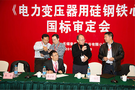 普天鐵心早在公司成立之初就編制了自己的企業(yè)標準《電力變壓器鐵心》,各項技術(shù)參數(shù)均高于相對應(yīng)的國家標準 GB/T6451.1《三相油浸式電力變壓器技術(shù)參數(shù)和要求》以及GB/T10228《干式變壓器參數(shù)和要求》,之后又進行了四次修訂,現(xiàn)行版本是Q/320205KKGF01-2012《電力變壓器鐵心》。2014年11月18日,《電力變壓器用電工鋼鐵心》國標審定會議在無錫順利召開,會上一致通過了由無錫普天鐵心股份有限公司主導制定的《電力變壓器用電工鋼鐵心》國家標準,該《標準》的制定,充分凸顯普天鐵心在科研方面的雄厚實力和在行業(yè)中的創(chuàng)新領(lǐng)軍地位。